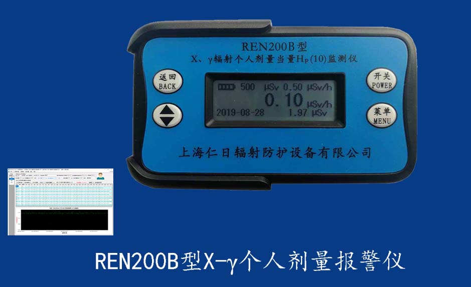 REN500H 輻射測量儀REN500H輻射防護用X、γ輻射劑量當(dāng)量(率)儀是監(jiān)測各種高劑量放射性工作場所的輻射劑量率專用儀器。儀器滿足《環(huán)境地表γ輻射劑量率測定規(guī)范》中高劑量部分的要求。該儀器除能測高能γ射線外,還能對低能X射線進行準(zhǔn)確的測量,具有良好的能量響應(yīng)特性。此外通過配套的RenRiRate輻射劑量管理軟件可將存儲的數(shù)據(jù)讀出后分析。該儀器廣泛用于環(huán)保、醫(yī)院、疾控、冶金、石油化工、化工、衛(wèi)生防疫、工業(yè)探傷、放射性試驗室、Xray裝置、加速器、各種放射性工作場所等需進行高輻射劑量檢測的場合。REN500H輻射防護用X、γ輻射劑量當(dāng)量(率)儀標(biāo)配的RenRiRate輻射劑量管理軟件功能特點:1、寬測